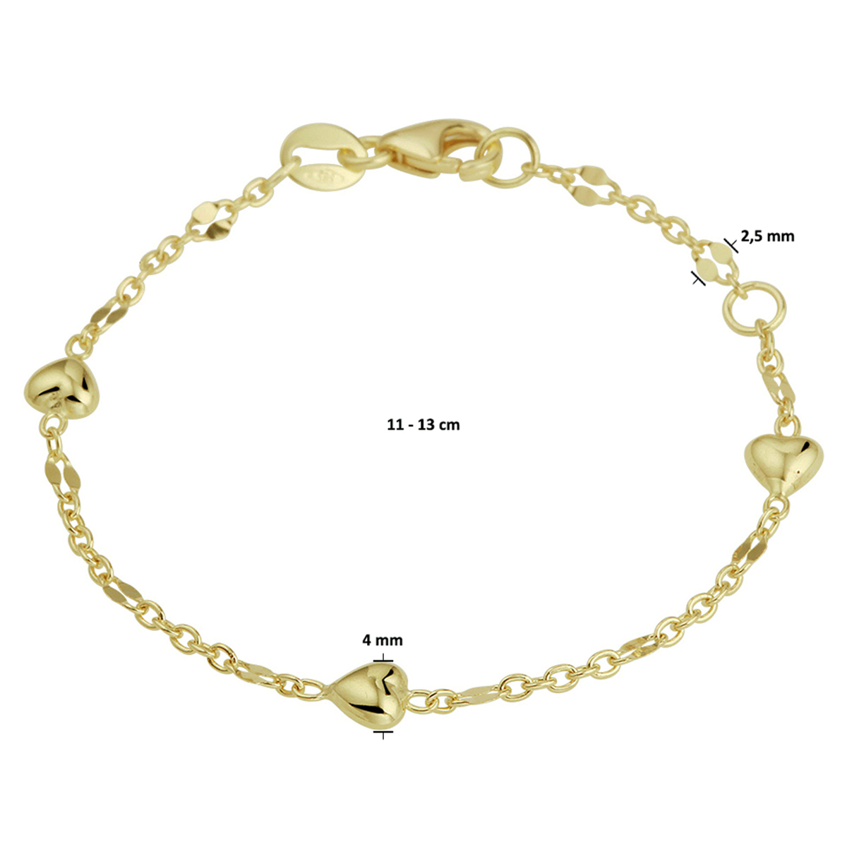14k Geelgouden anker armband uitgevoerd met hartjes van 4.5x4mm.