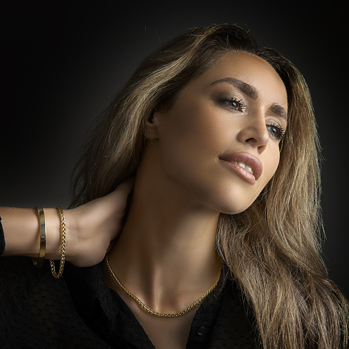 Sieraden van 14 karaat goud met daarin een kern van 925 zilver. Geelgouden armband met vossestaart schakel.