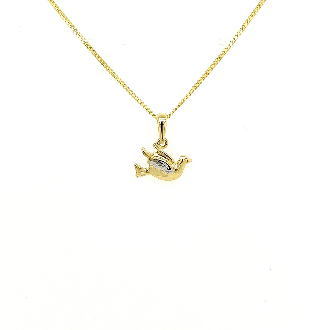 Deze bicolor gouden hanger is gemaakt tot een sierlijke vogel. De vleugel is witgoud, wat zorgt voor een bijzonder effect. Verder is de hanger volledig glad gepolijst.