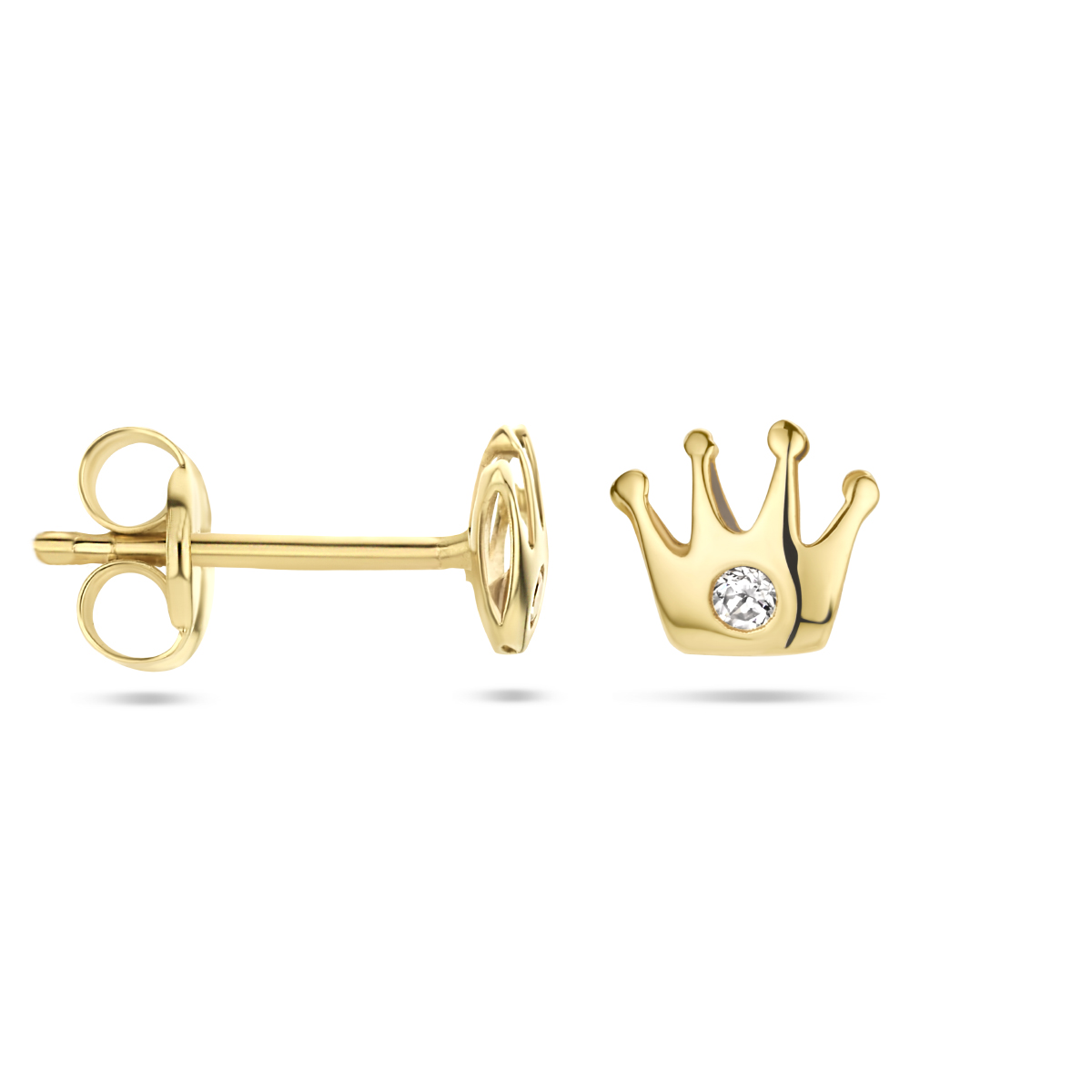 14k Geelgouden oorknoppen in de vorm van een kroon.