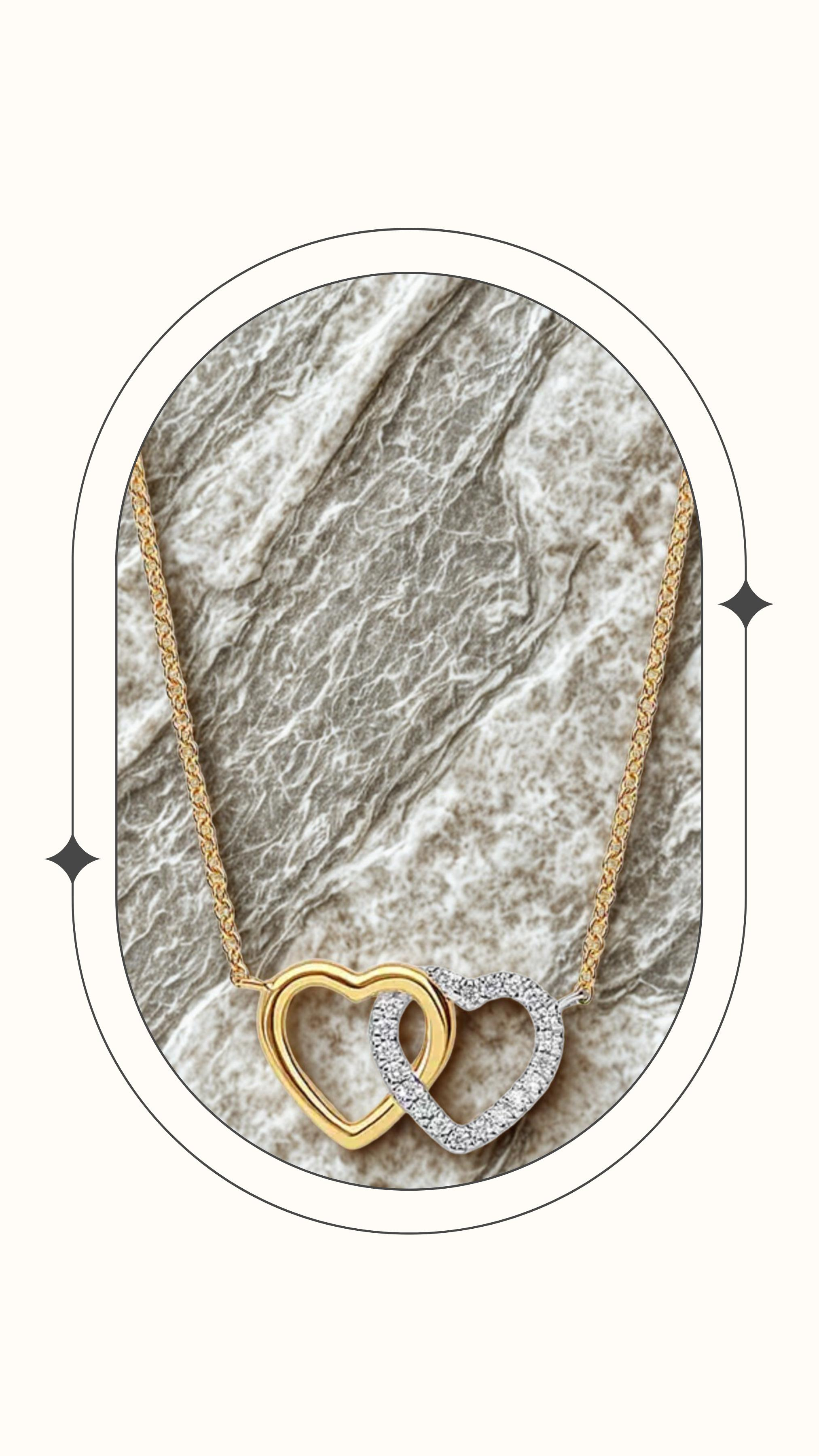 Gouden (14 karaat) verfijnd collier met dubbele hart hanger