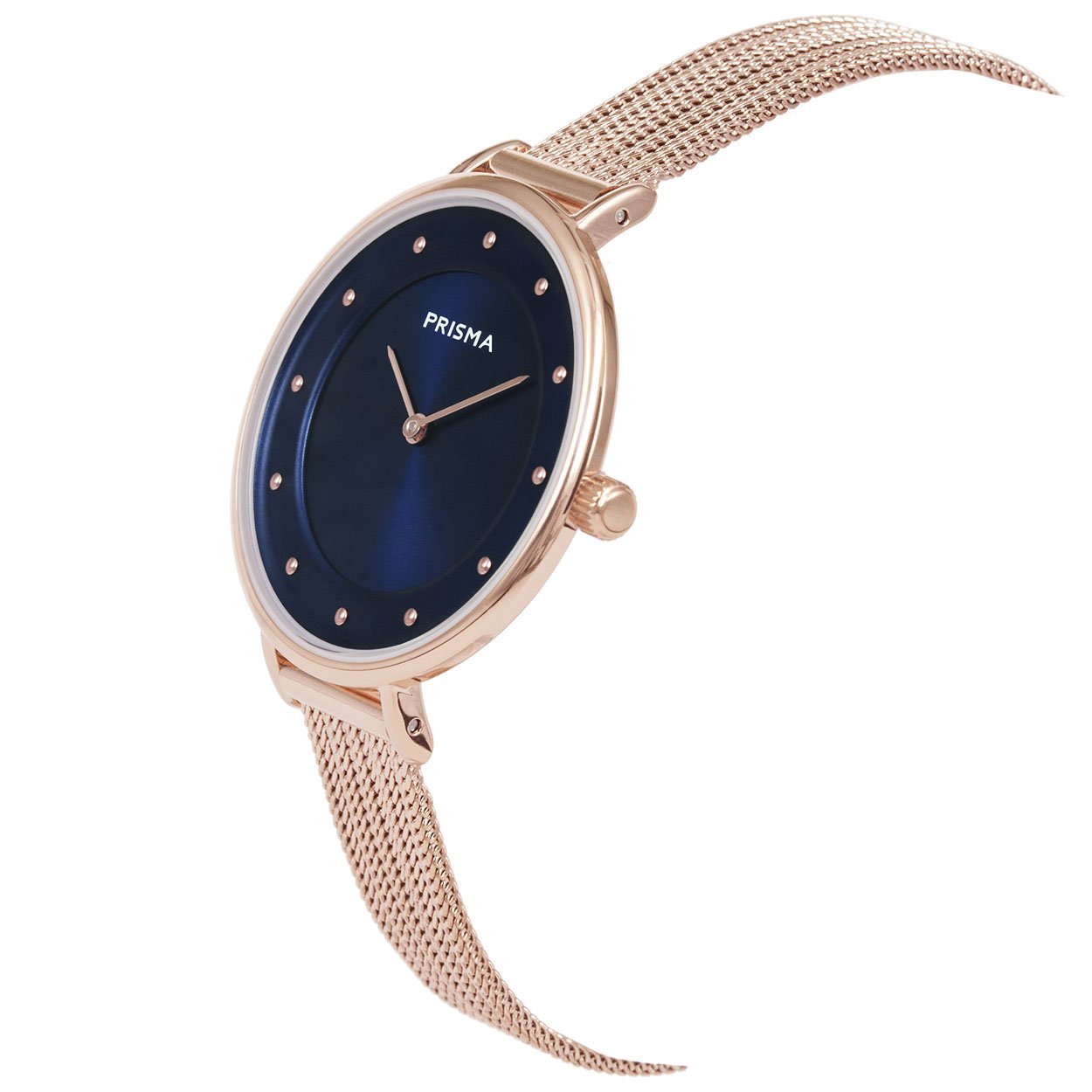 - wijzerplaat blauw met roségoudkleurige puntjes