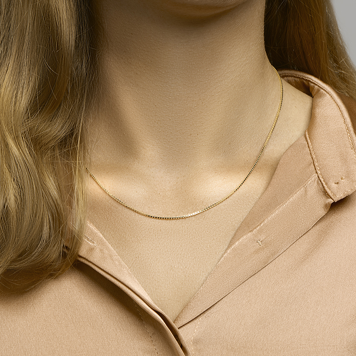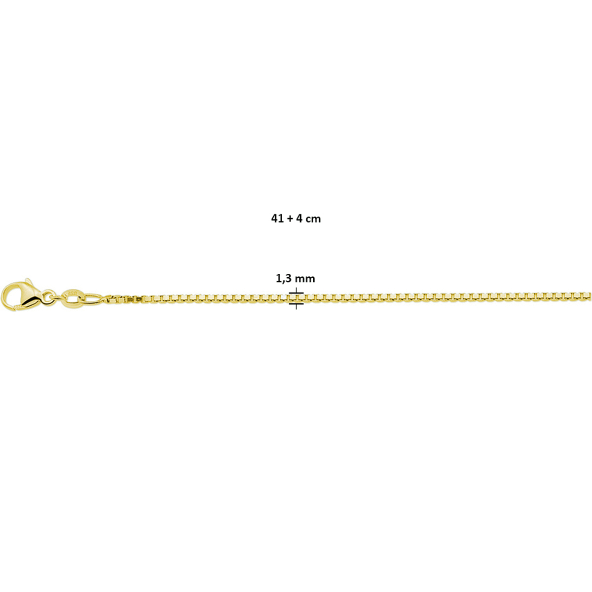 Verguld op 925 zilveren collier met een schakelbreedte van 1.3mm. Het collier heeft een draaglengte van 41cm en een extensie van 4cm. Uitgevoerd met een karabijn sluiting. Geen garantie op plating.