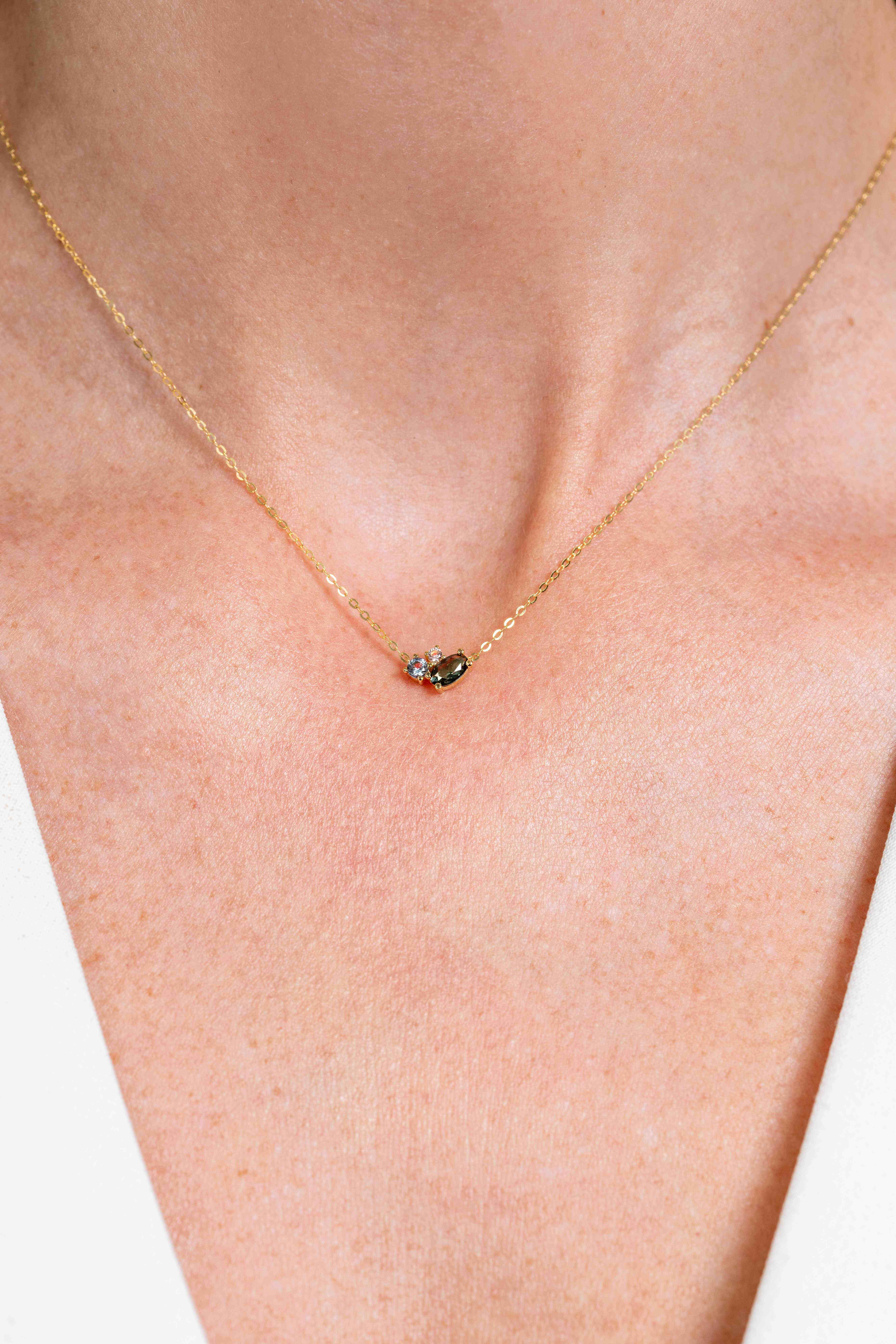 ZINZI Gold 14 krt gouden ketting 43cm, in het midden bezet met fijne groene, blauwe en champagne zirconia's ZGC379