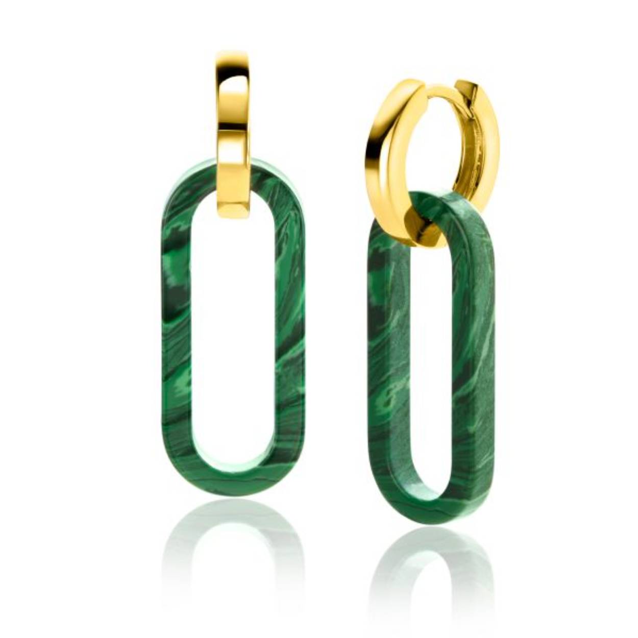 ZINZI grote ovale oorbedels 30mm in trendy malachiet groen. Hang ze gemakkelijk aan je ZINZI oorringen. De open ruimte is 7mm, waardoor deze oorbedels aan hele brede oorringen gehangen kunnen worden.