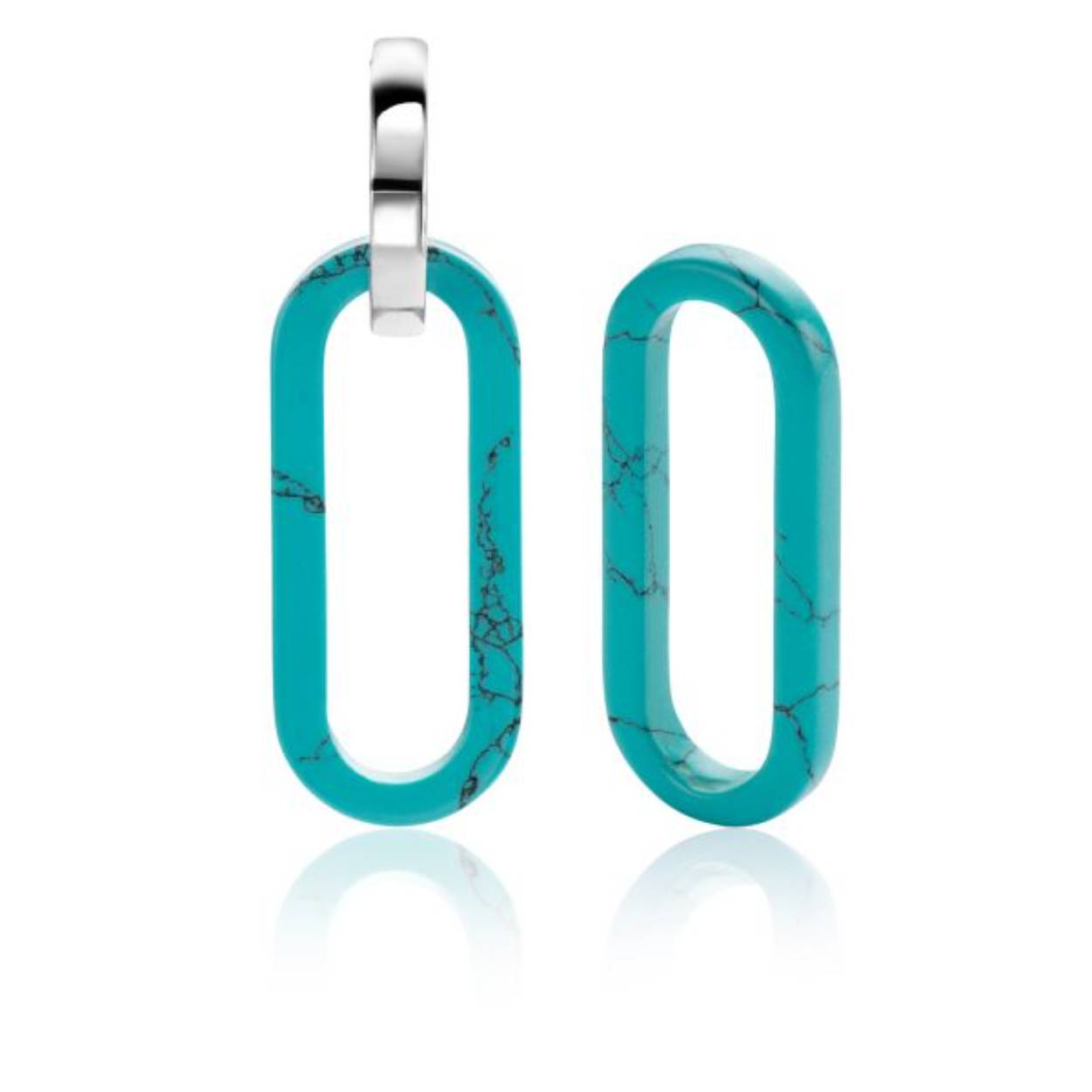 ZINZI grote ovale oorbedels 30mm in trendy turkoois. Hang ze gemakkelijk aan je ZINZI oorringen. De open ruimte is 7mm, waardoor deze oorbedels aan hele brede oorringen gehangen kunnen worden.
